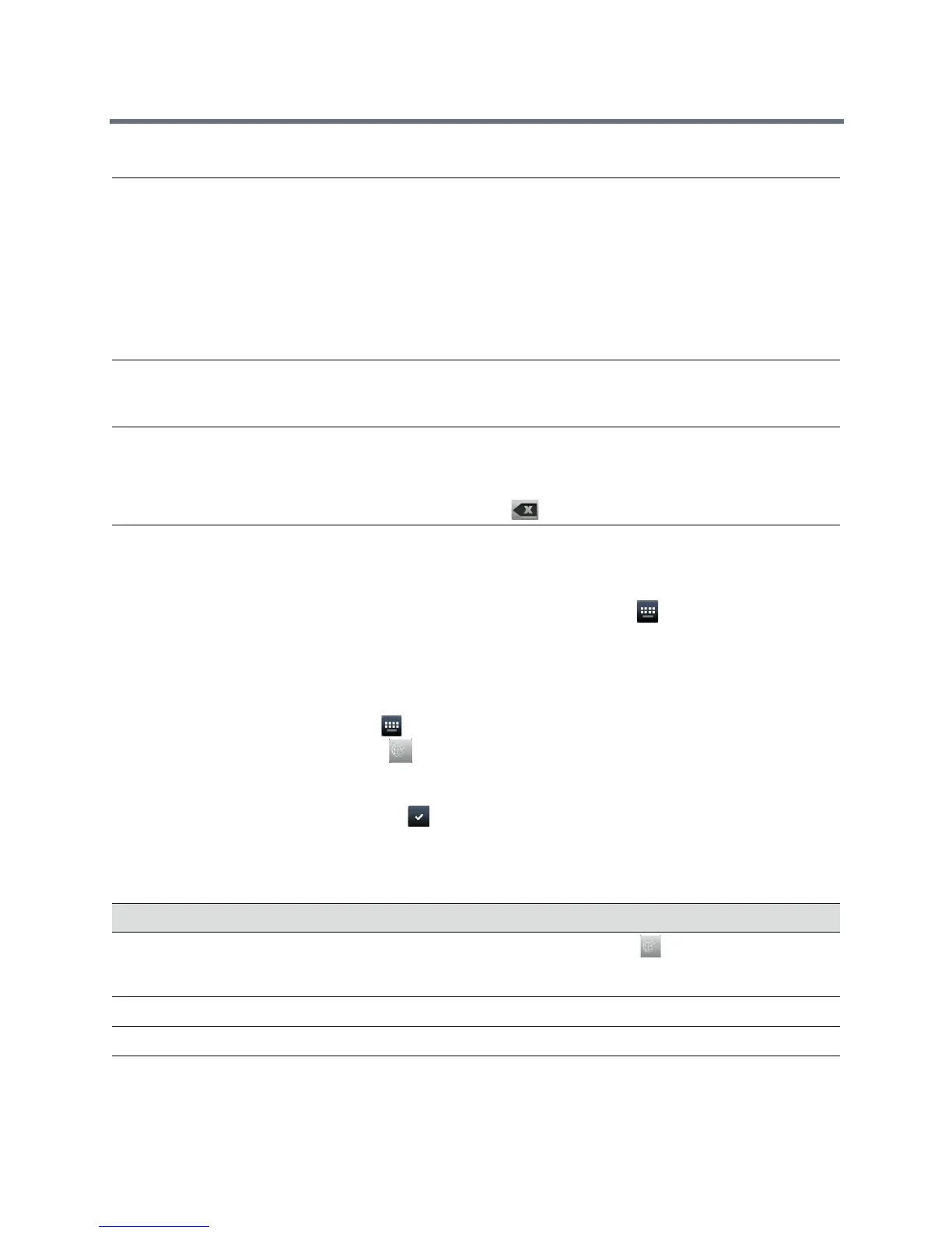 The following table describes how to enter information using the onscreen keyboard.