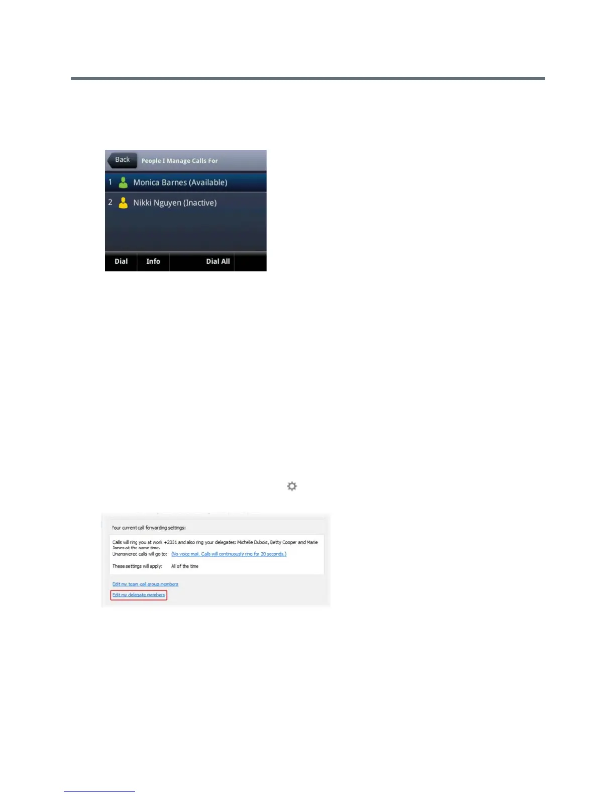 Delegates removed from the Delegates group can no longer monitor call activity on a boss’s line.