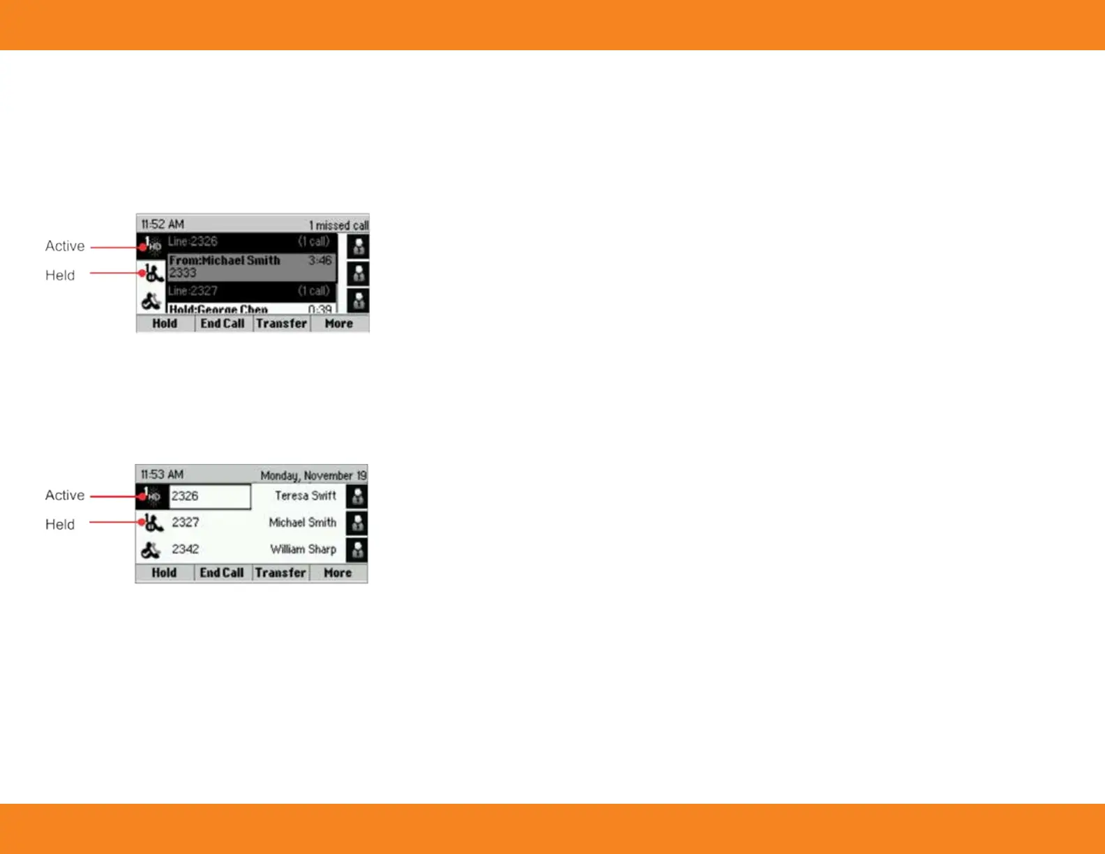 a phone line display under the associated phone line. Scroll up or down to see all
