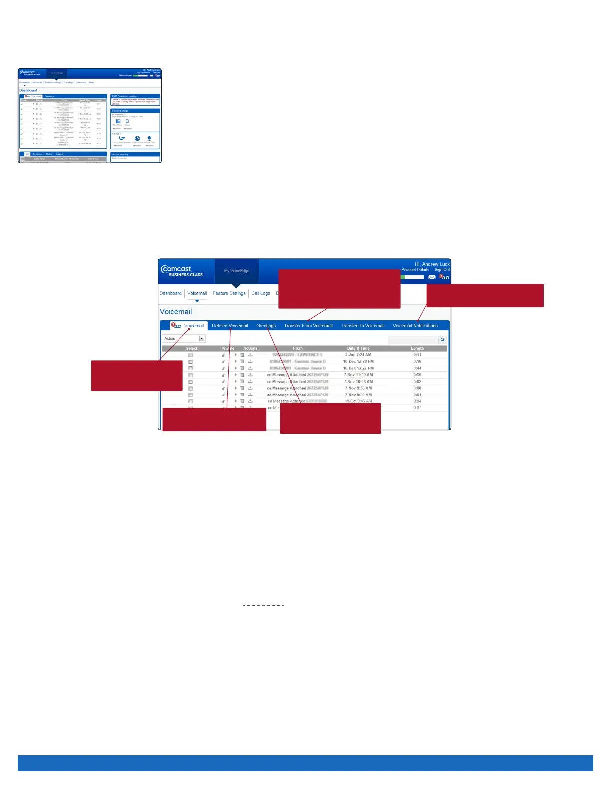 portal provides a more detailed view and the ability to listen to ALL your voice messages while the dashboard contains only your most