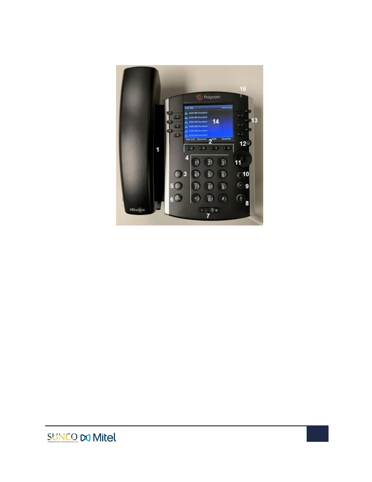 13. LINE KEYS: Enable you to select a phone line, view calls on a