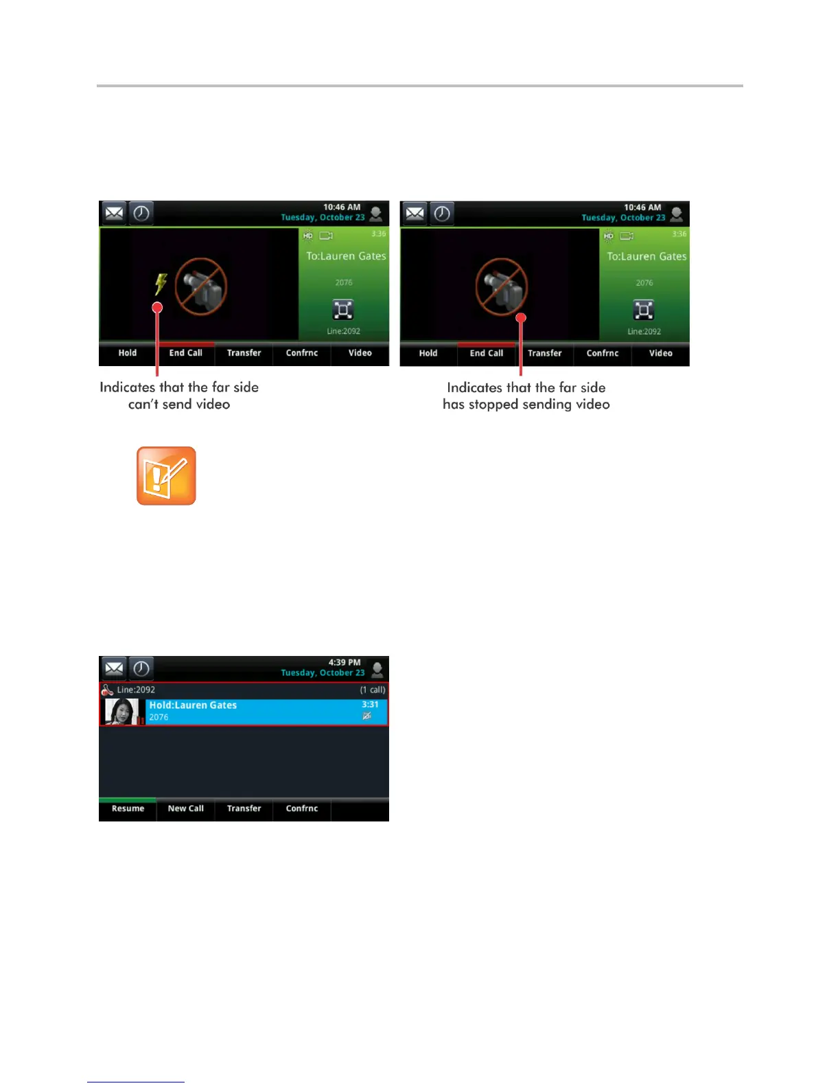 image taken just before you held the call, as displayed next. The person’s video stream returns when you