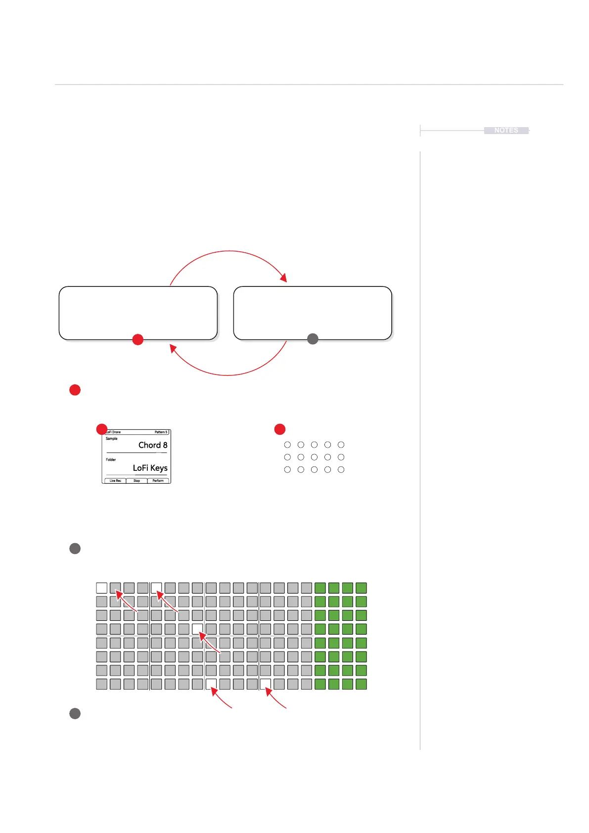 left. Press [Patterns] to switch back to sequencer mode to create the pattern steps.