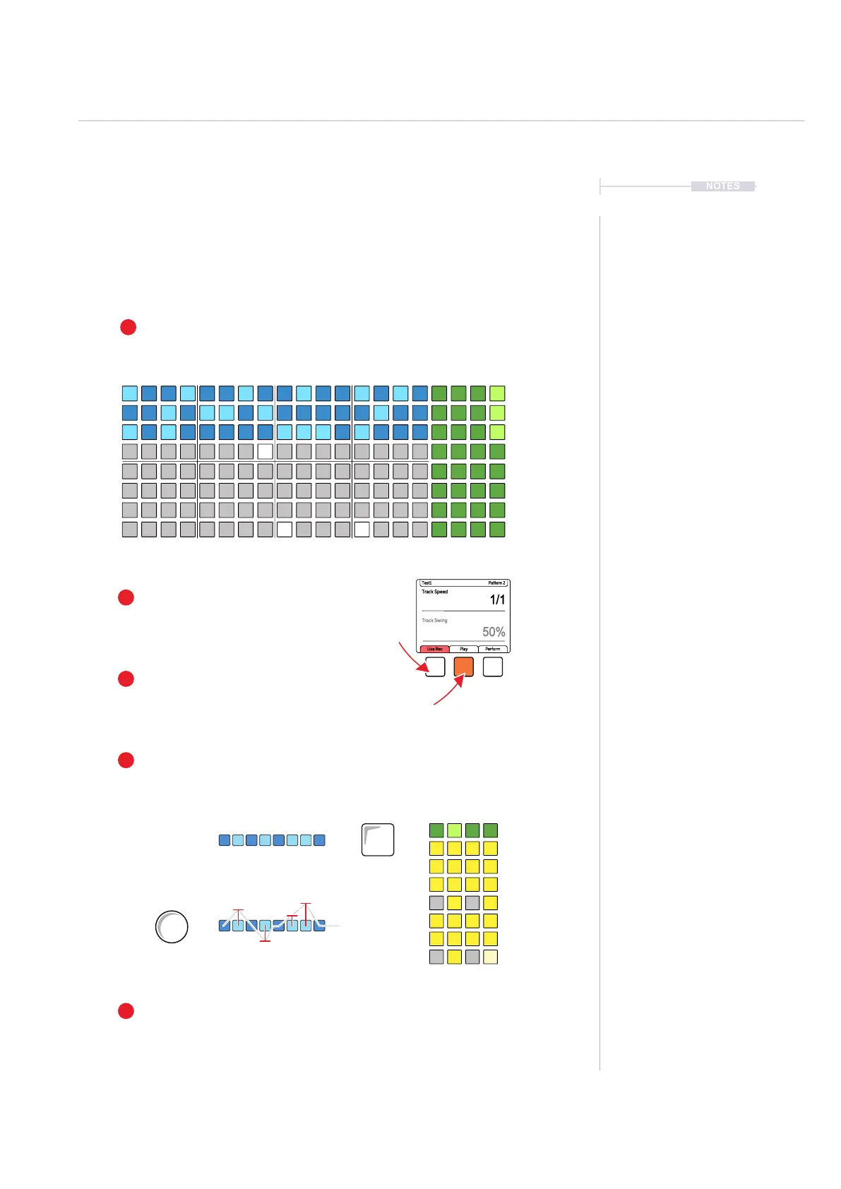 sequence time with the pattern steps. The (Screen) knob can also be used.