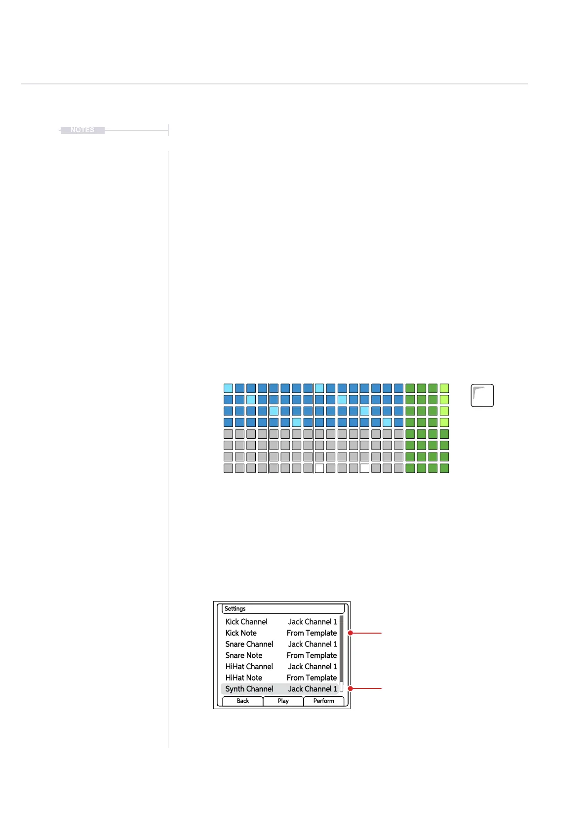 Defaults are ‘From Template’ for beat ll notes and ‘Jack Channel 1’ for MIDI Out.