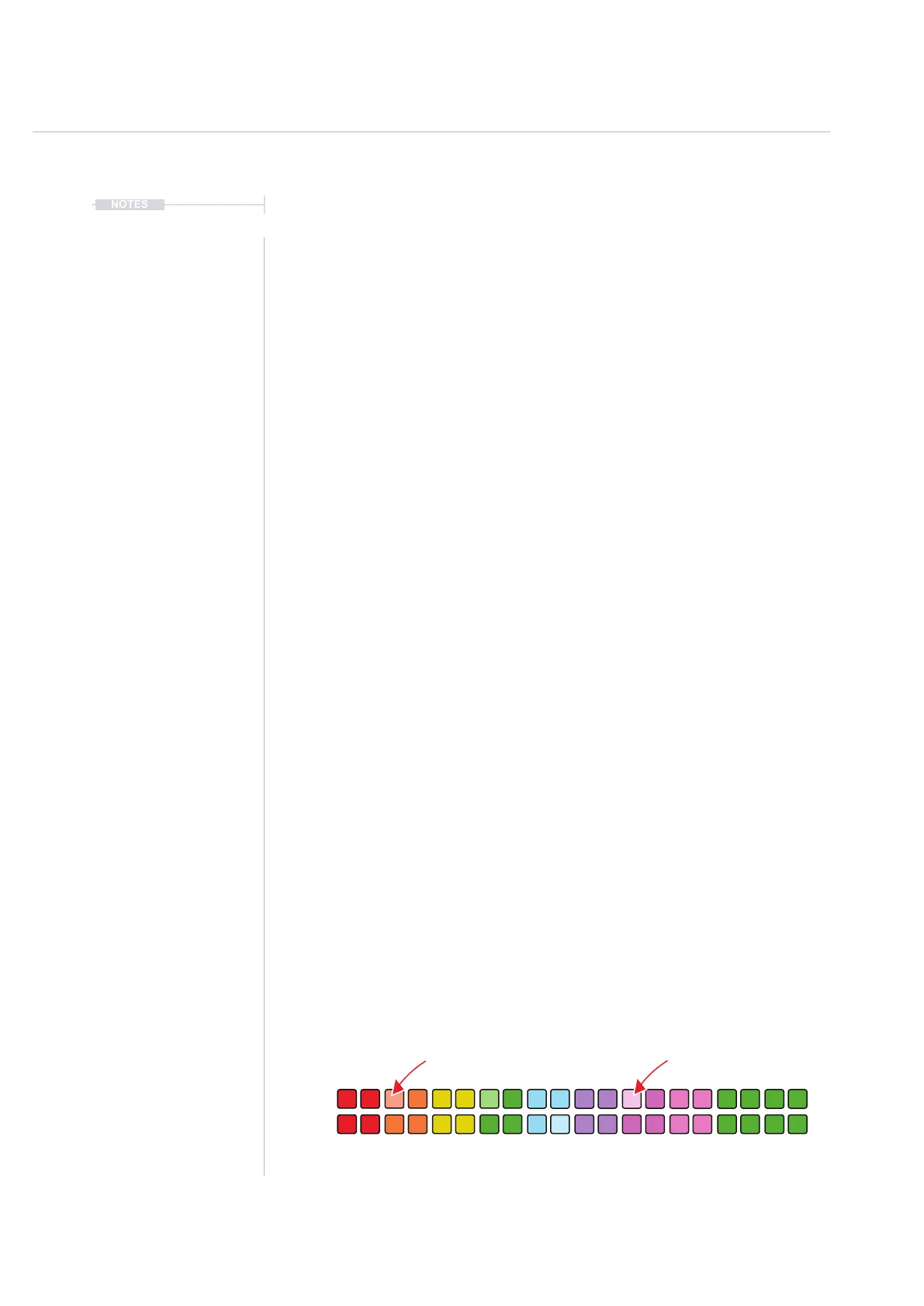 • The 8x16 pads will illuminate in color. Each color represents a