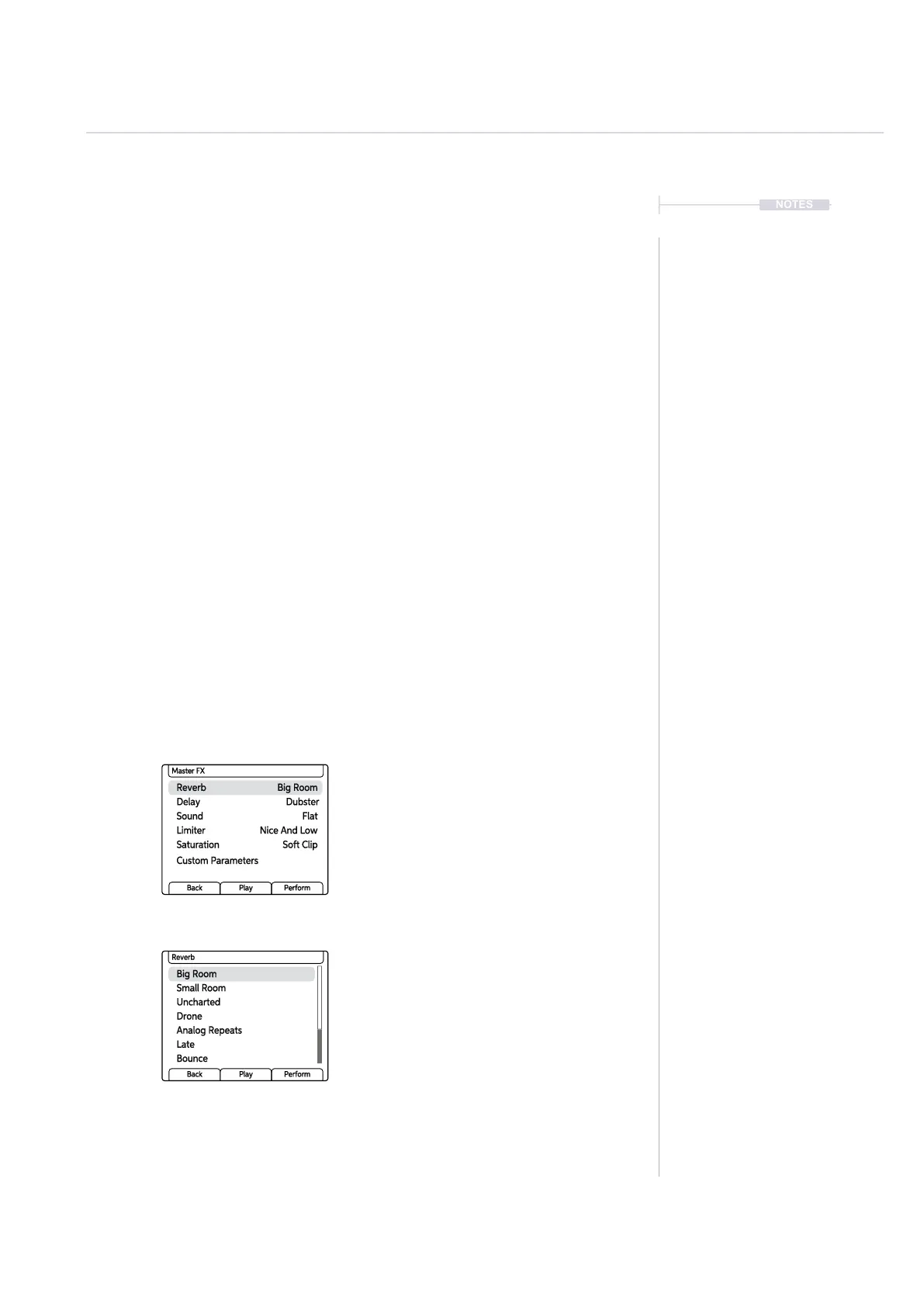 2. Turn (Screen) knob to scroll through the effects; Reverb, Delay, Sound,