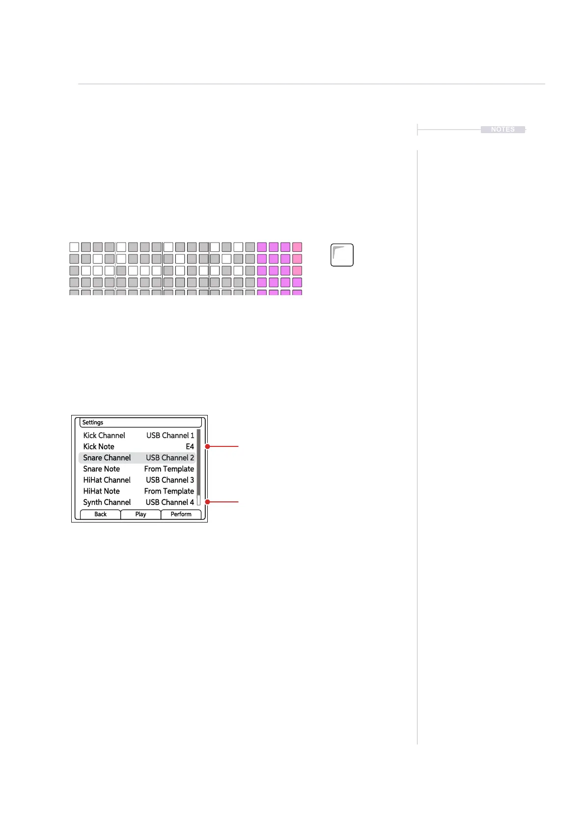 As well as the dened notes for Kick, Snare and HiHats, the MIDI Output