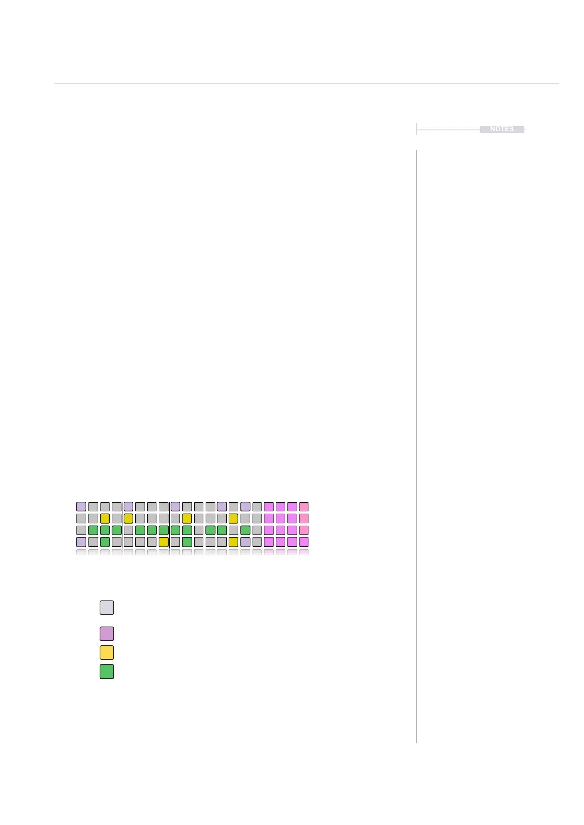 pad color: Synth 1, Violet; Synth 2, Yellow; Synth 3, Green.