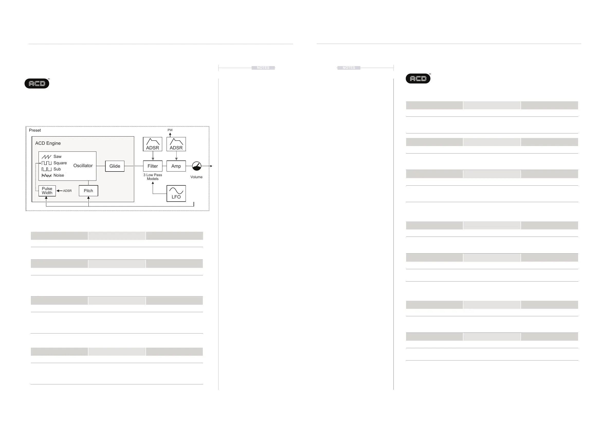 variable pulse width and pitch, 2 envelopes (amp and lter) and 2 LFOs.