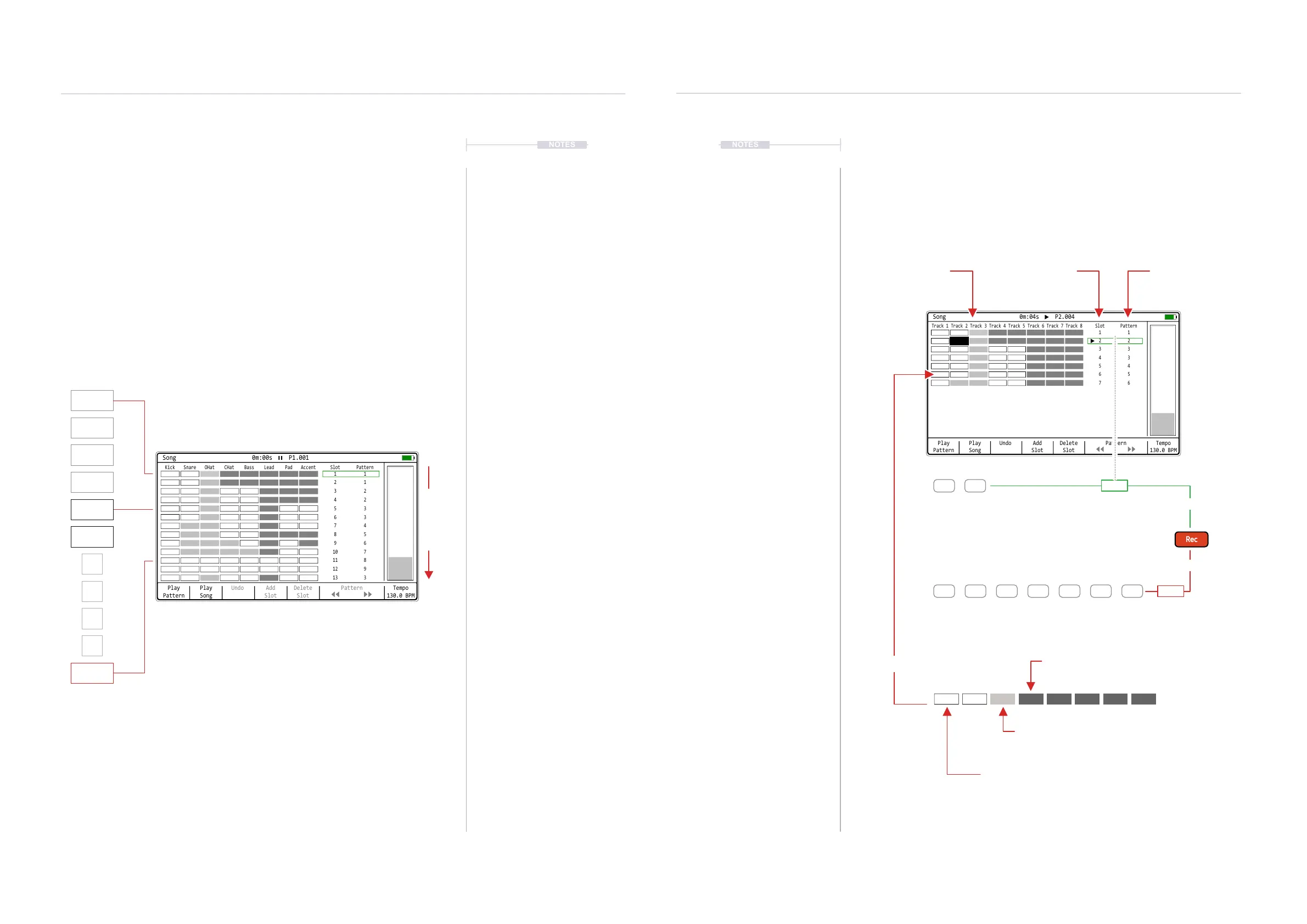 when buttons are released. The interface for song mode is by default empty