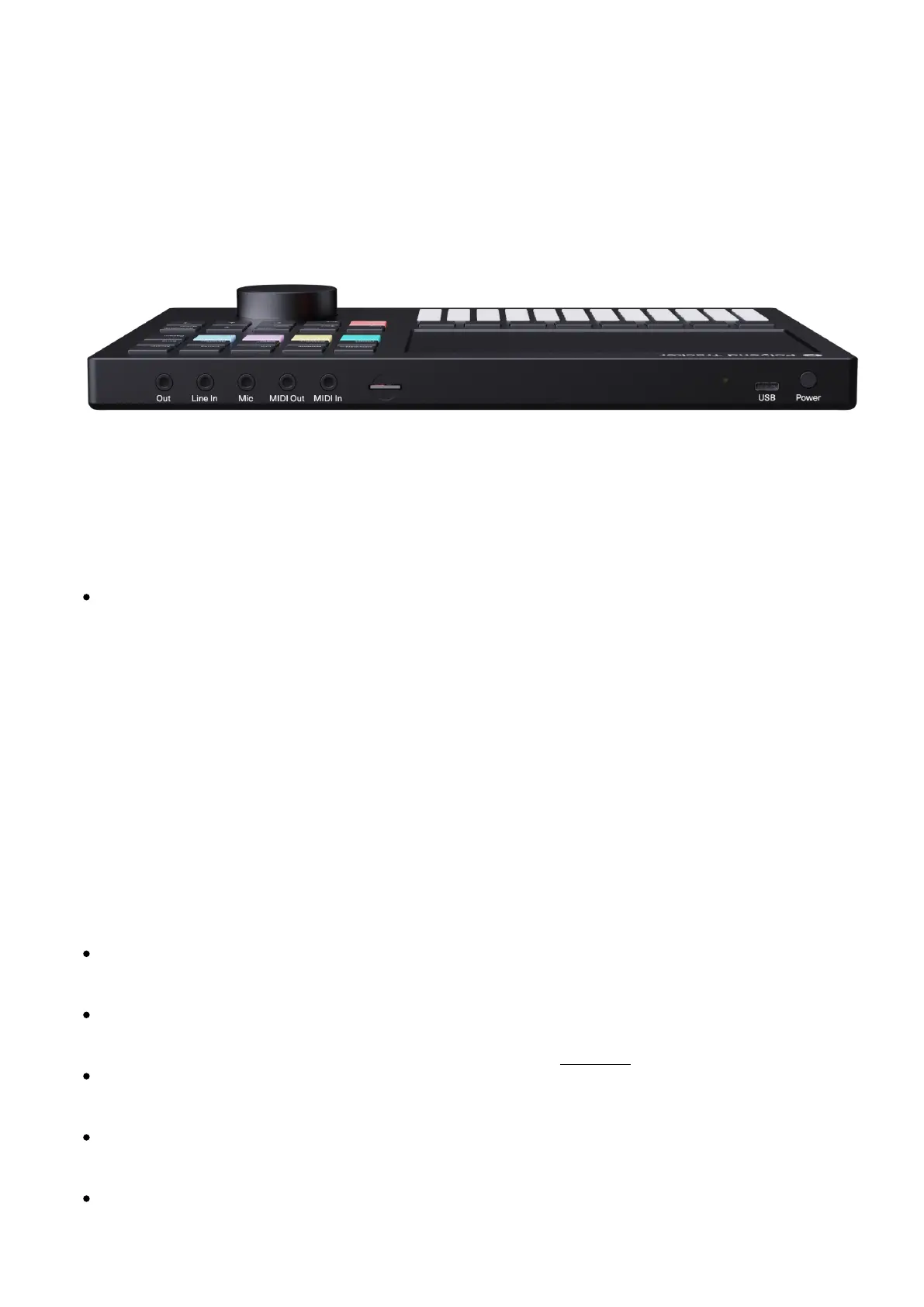 MIDI data output port – use the included TRS type-B 3.5mm jack to MIDI DIN adapter to