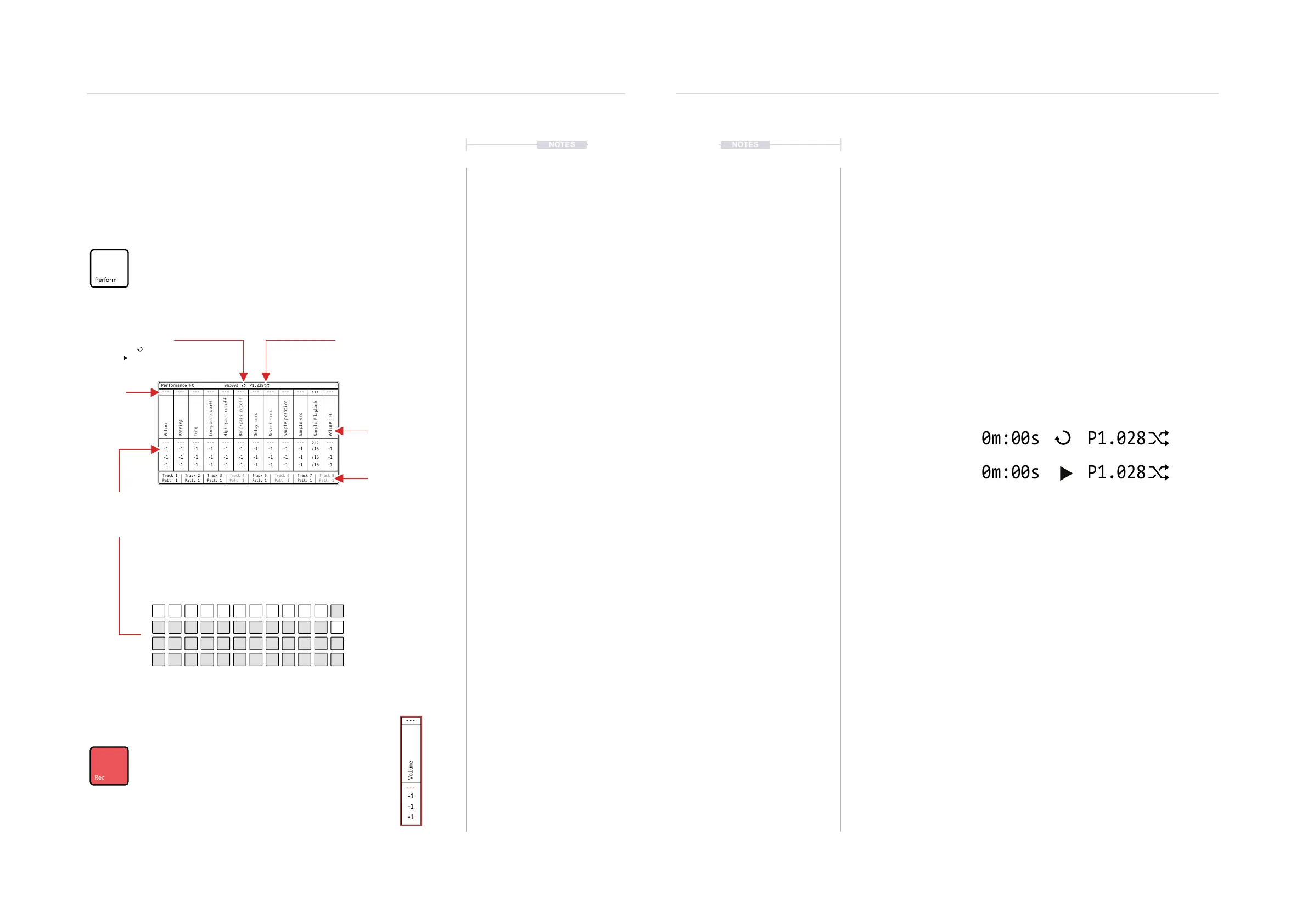 pattern and song pages while performance mode is active.