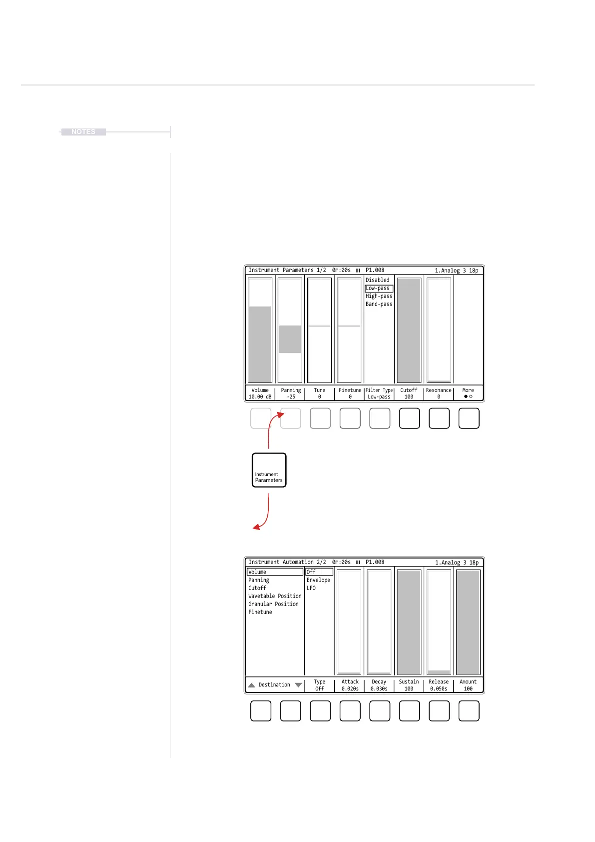 pages are accessible directly from toggling the [Instrument Parameter]