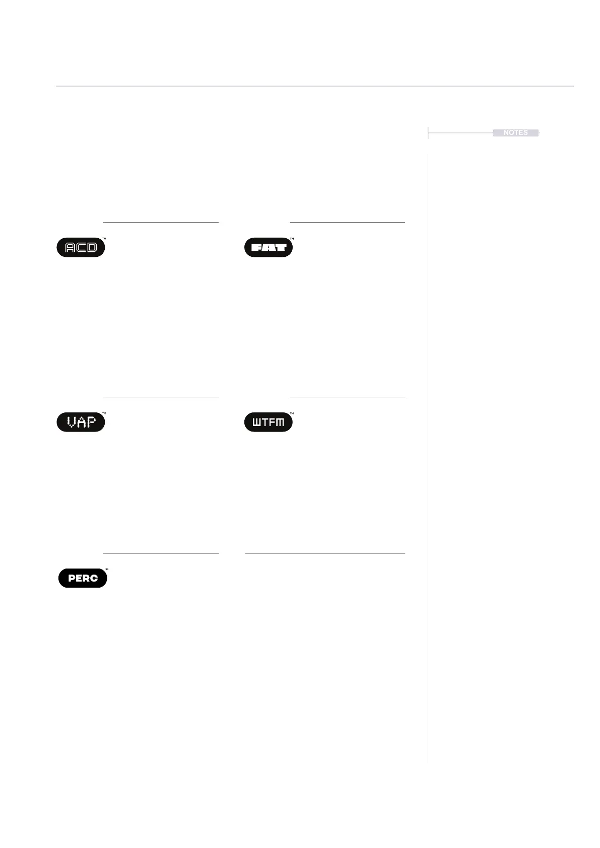 synthesizer models. Each synthesizer has six editable, model dependant