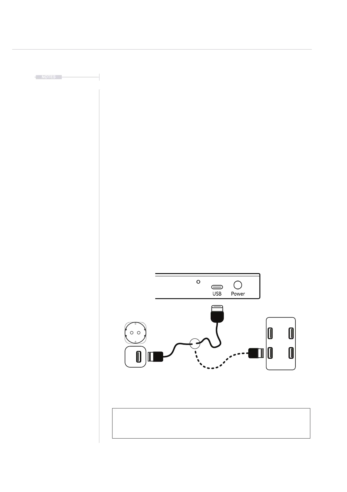 supplied mains USB adapter or from a rechargeable battery power bank.