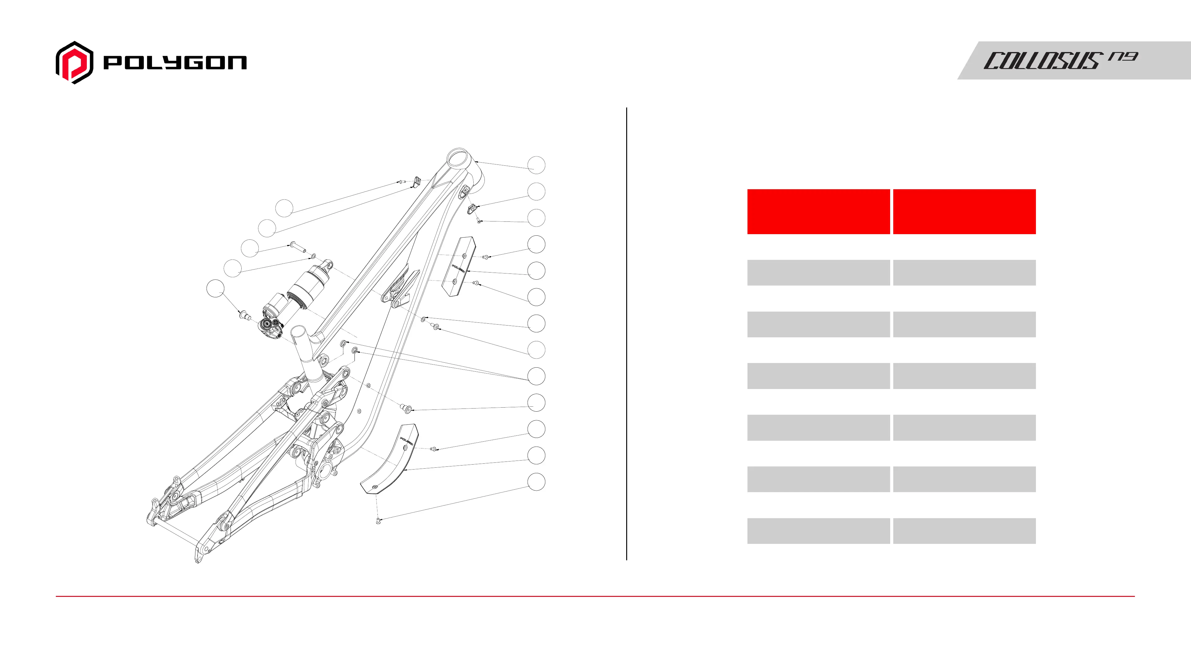 POLYGON COLLOSUS N9 - Bicycle Parts - Shock & Accessories Assembly; Shock Pressure Recommendation