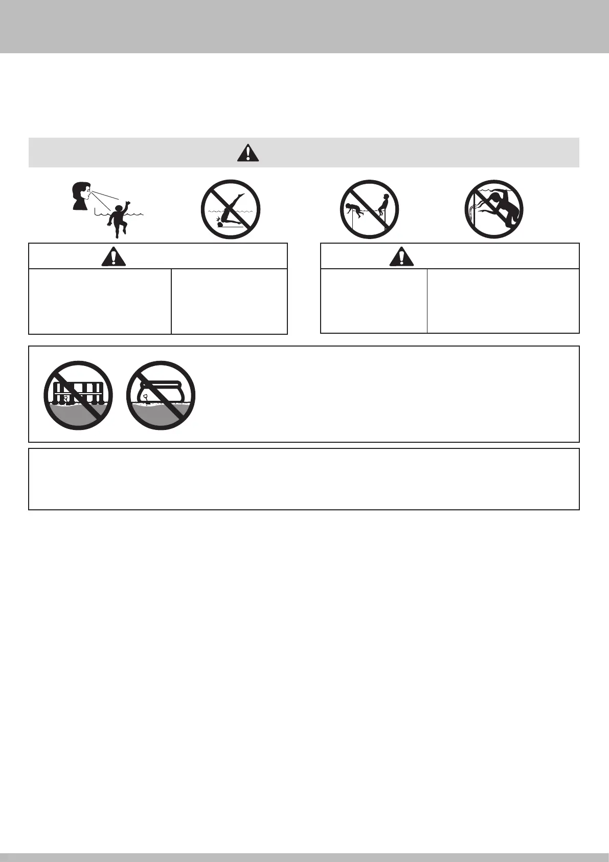 • Do not leave toys inside pool when finished using, since toys and similar items might attract a child to the pool. Position furniture (for example, tables, chairs)