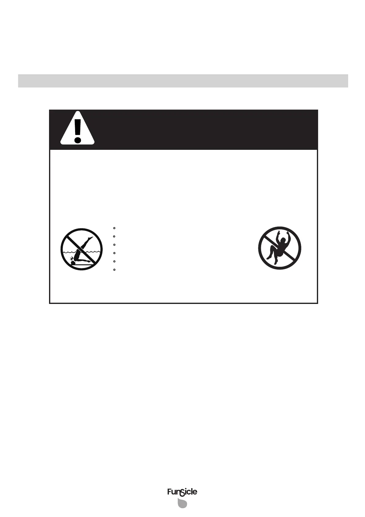• Never allow fooling around, diving, or jumping into or around the pool. This could lead to serious