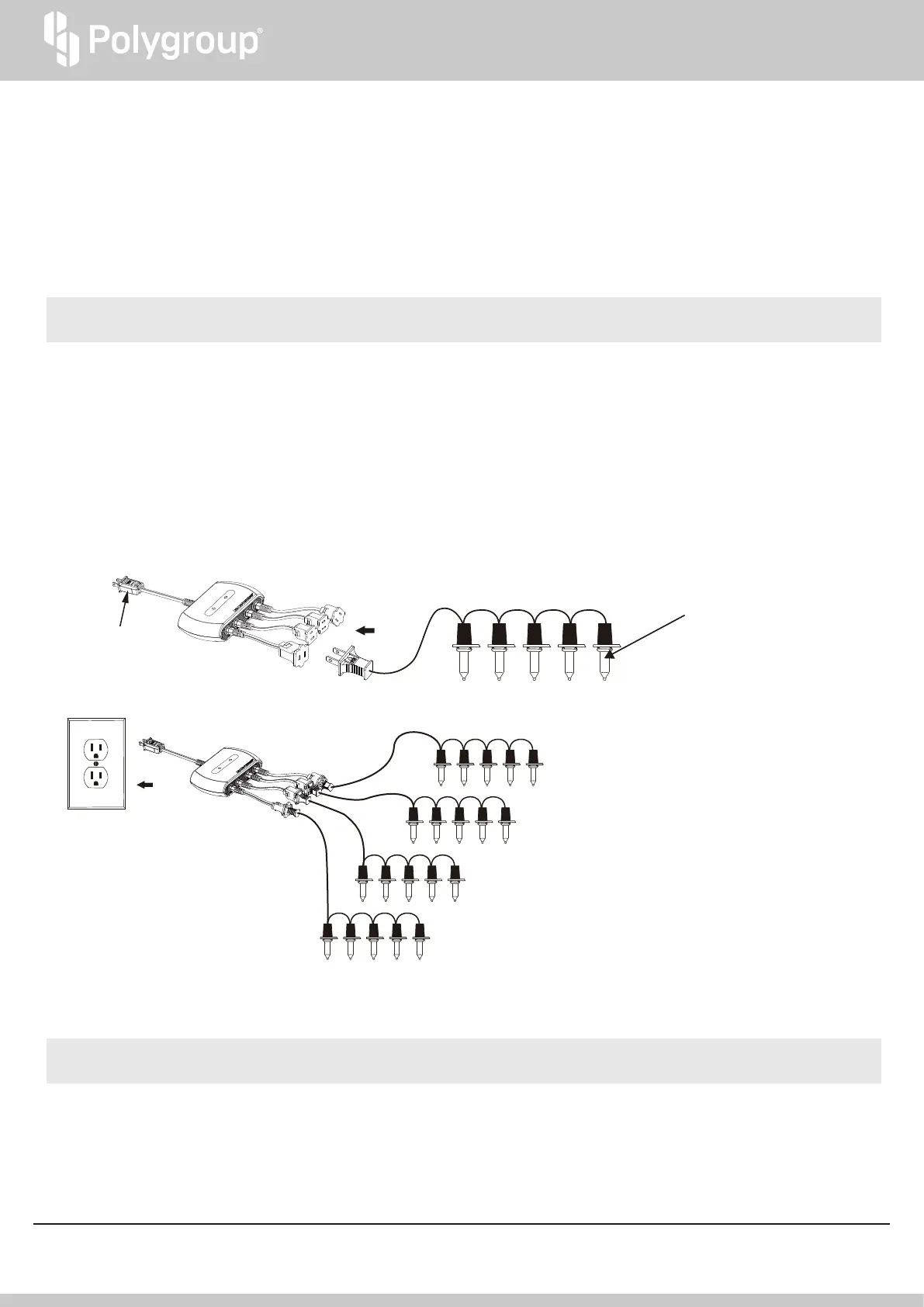 1. Connect your LED lights (not included) to one of the four outlets of the product. The actual number of lights to be connected to each outlet varies