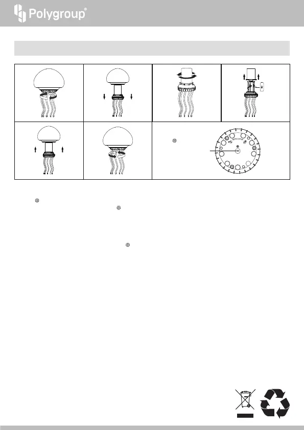 2. Valon ollessa kytkettynä päälle voit painaa painiketta kerran valo-show -esitysten valitsemiseksi