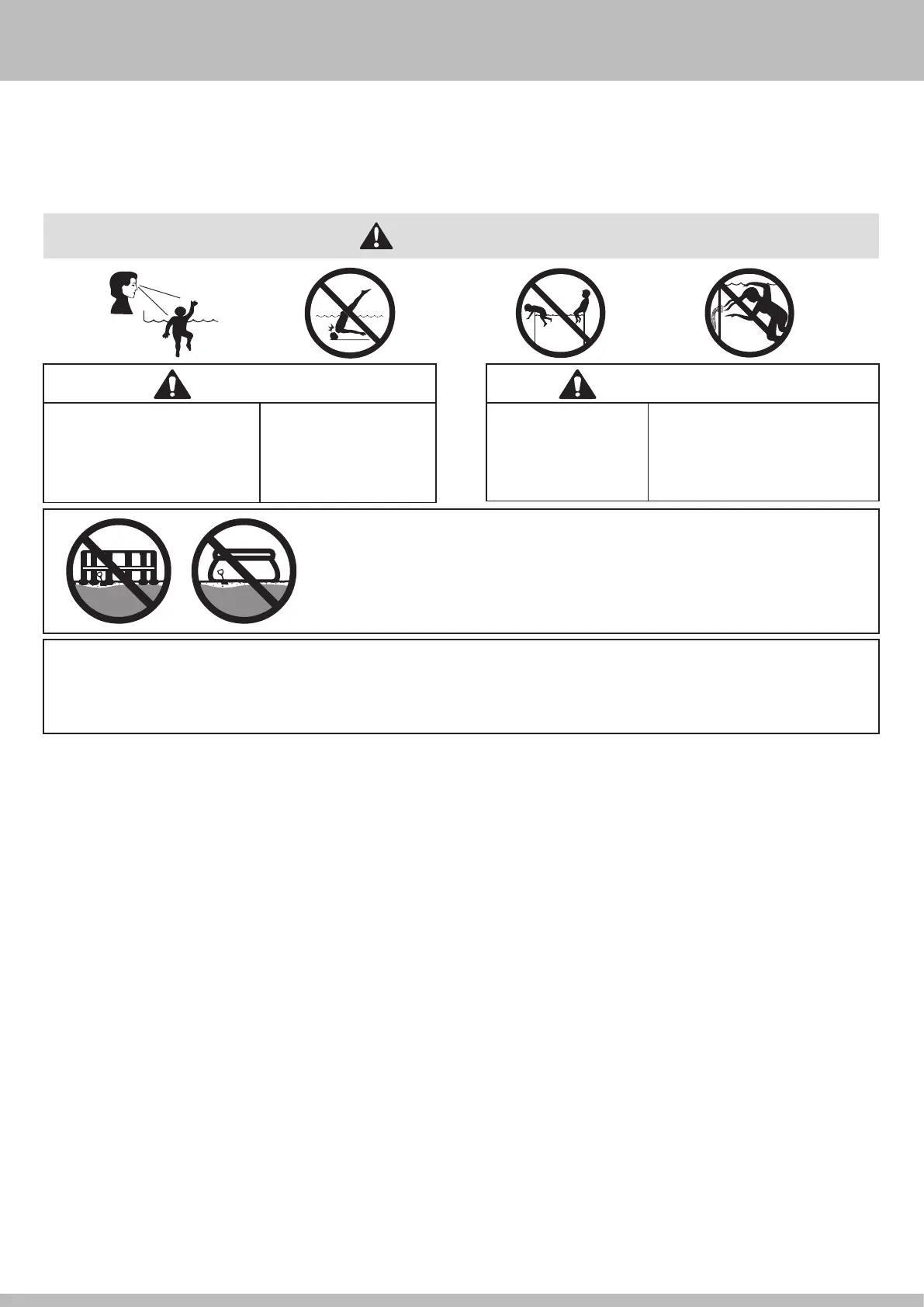 N’autorisez jamais les jeux tapageurs, les plongeons et les sauts dans et autour de la piscine. Cela pourrait entraîner des blessures graves, la paralysie ou la mort.