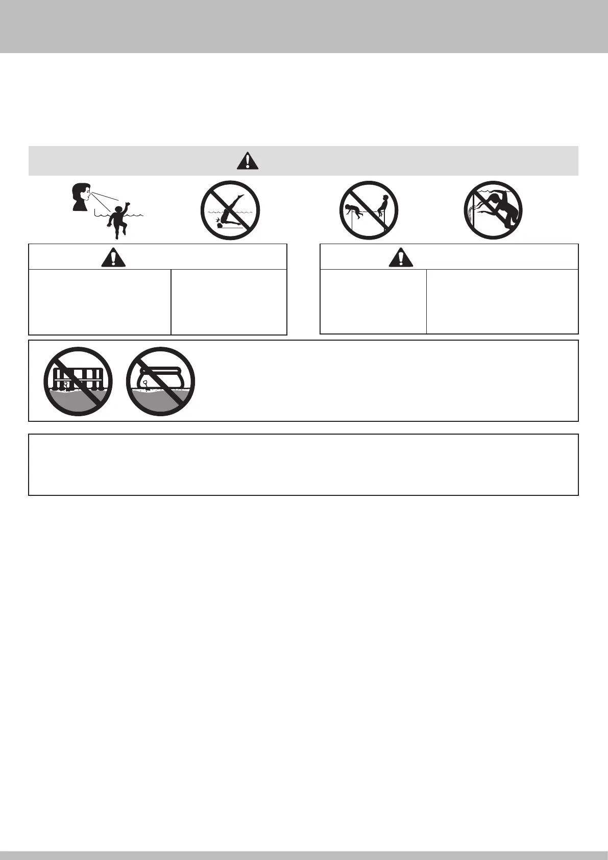 (por ejemplo, mesas o sillas) lejos de la piscina para que los niños no puedan subirse a ellos para acceder a la piscina. Después de usar la piscina, deje el nivel