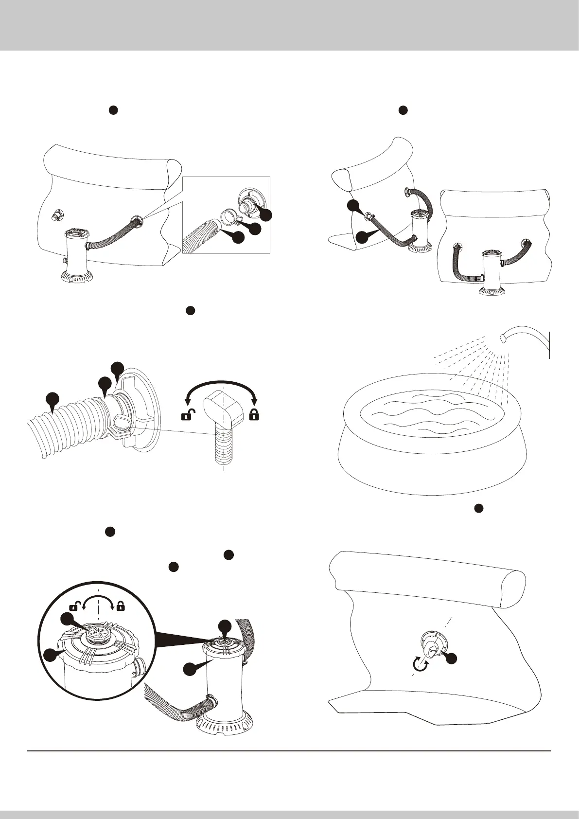 8. No enchufe la bomba de filtración todavía. Empiece a llenar la piscina de