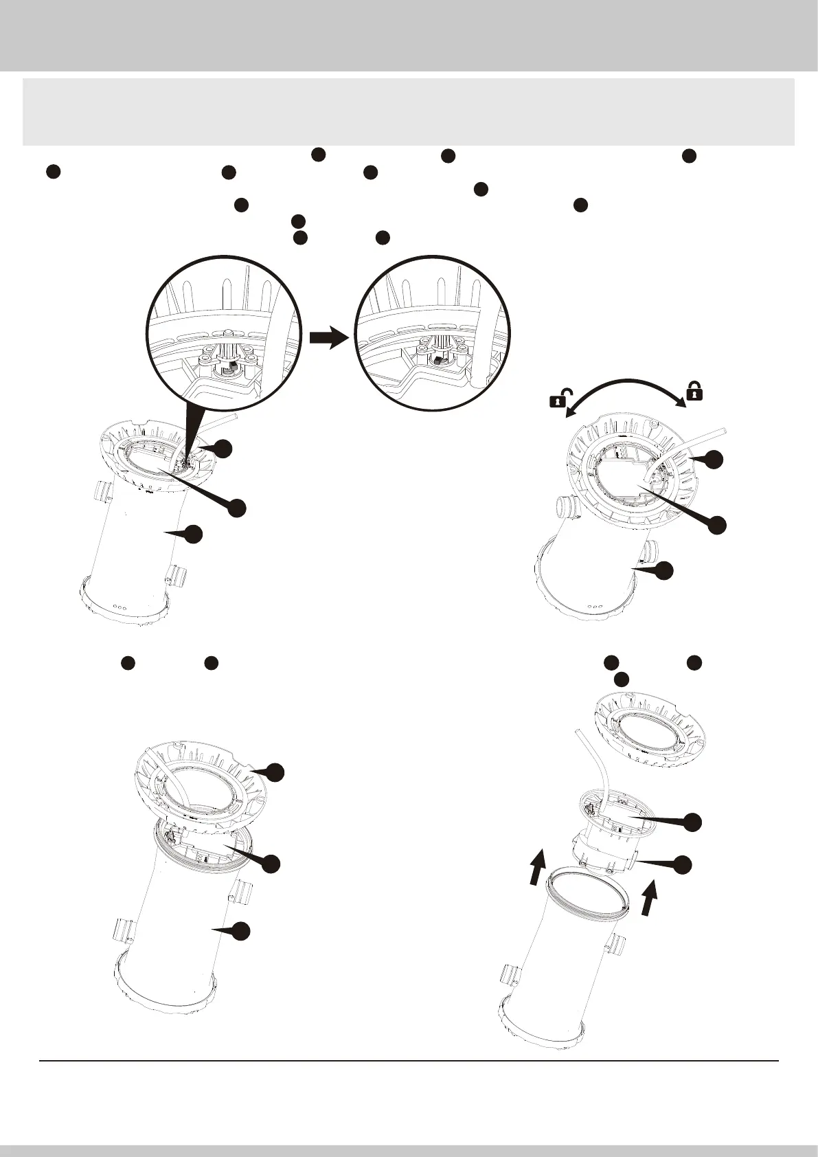 4. Ponga la bomba del filtro boca abajo. Ahora la base 15 está bloqueada por una palanca de seguridad. Para desbloquearla, empuje la palanca de seguridad hacia