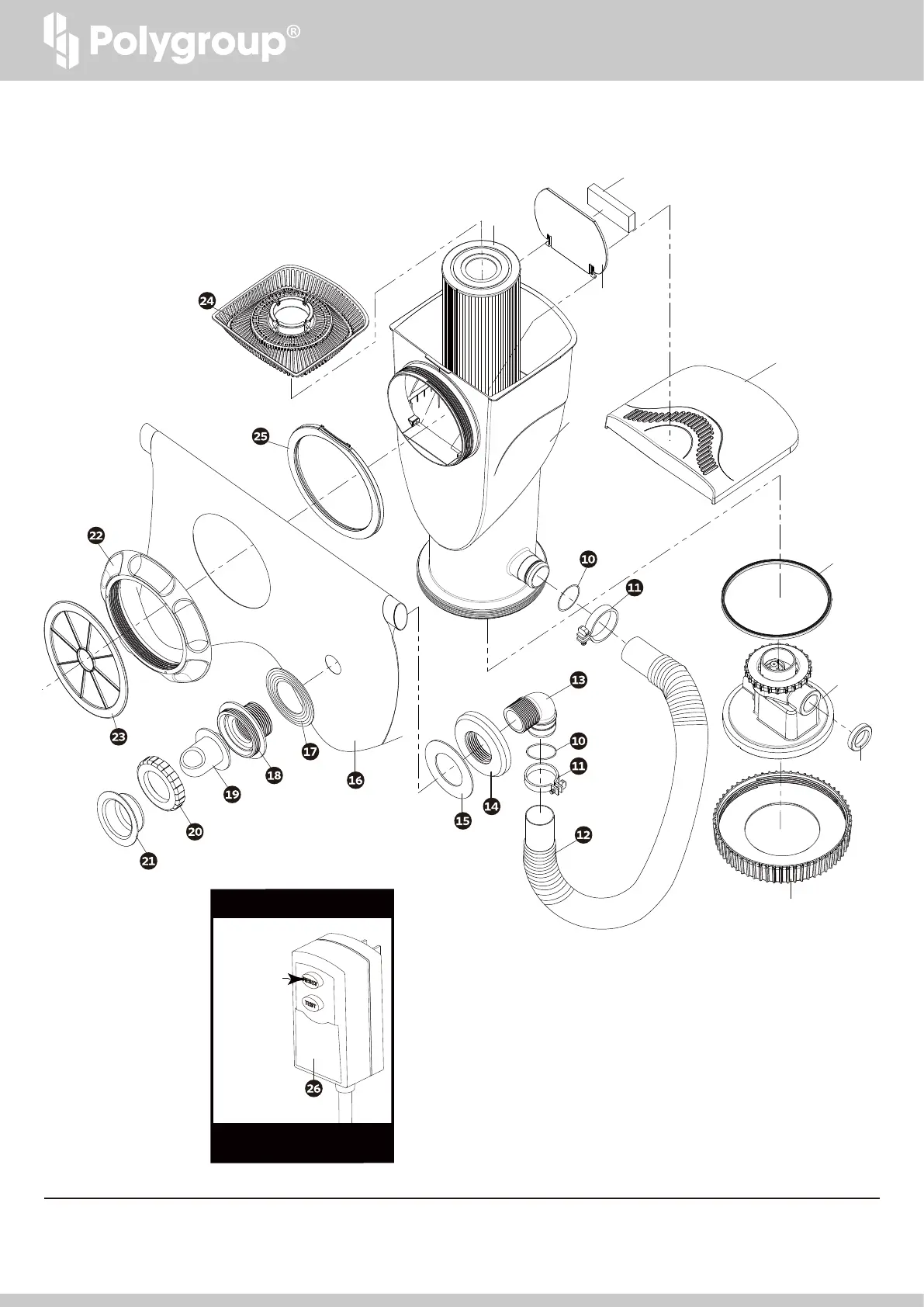 PUEDE CONTENER PASTILLAS DE CLORO DE 1” DE DIÁMETRO. COMPRUEBE LOS NIVELES DE CLORO PARA