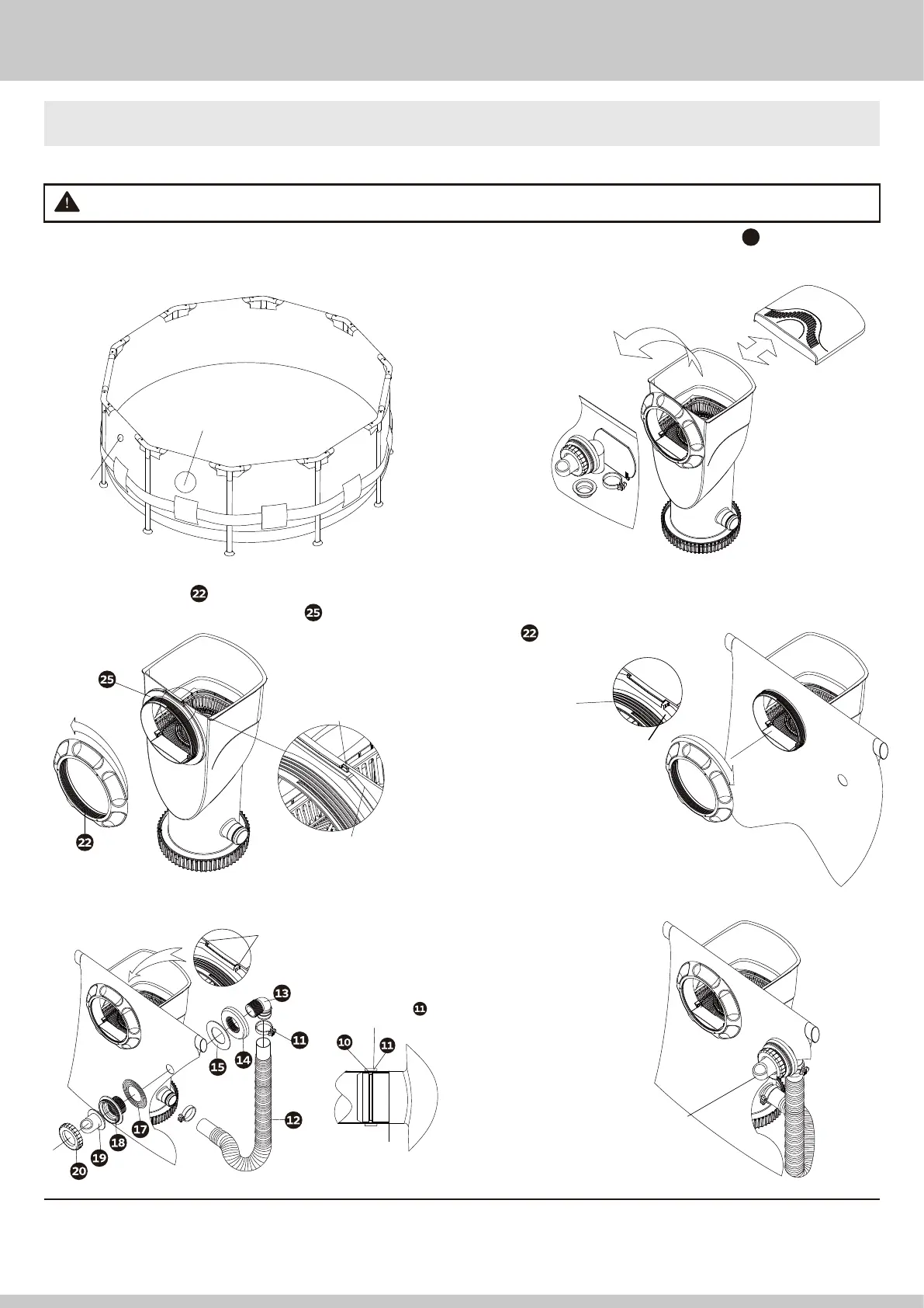 correspondiente de la piscina, vuelva a enroscar bien el anillo de sellado