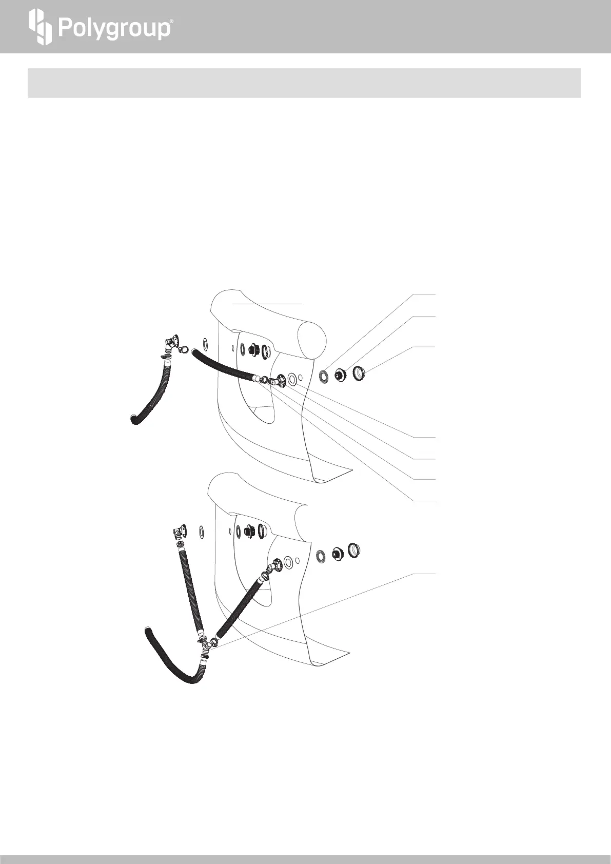• For dual drain only. TWO outlet fittings are used for each pump.