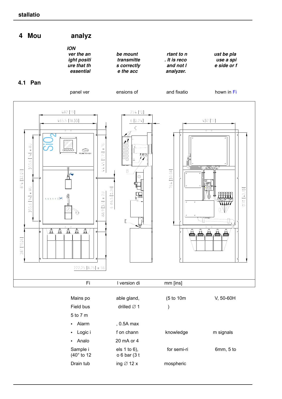 For the panel version, the dimensions of the analyzer and fixation holes are shown in Figure 4.
