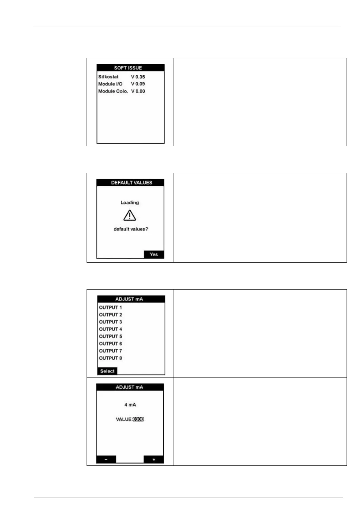 (calibration, 4-20 mA scale, alarms, sequence, etc.), and the