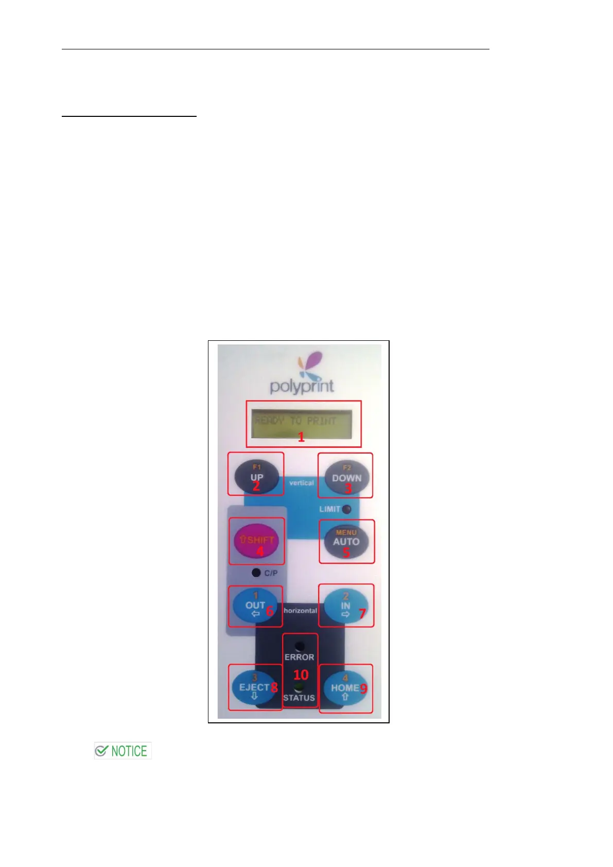 Send the plate to print position: Press the HOME button (9) or the GREEN button to send the
