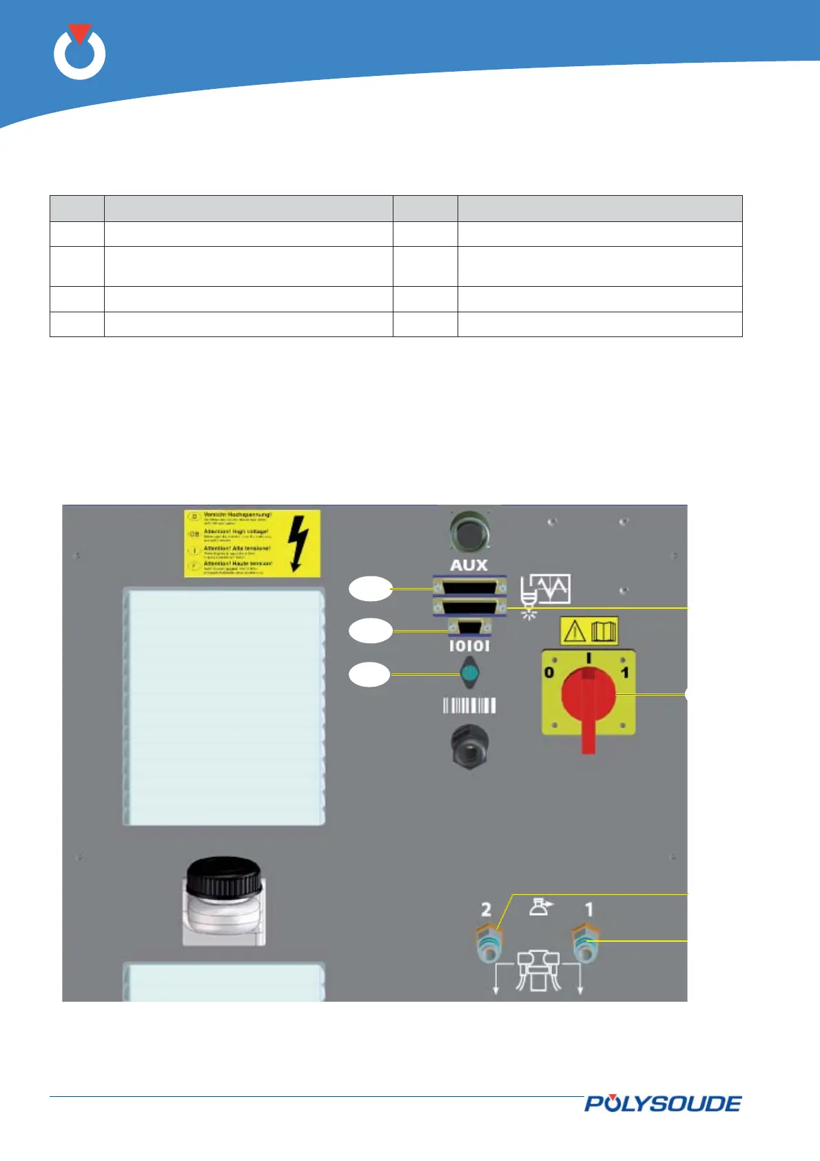 FA 8 Connection of the shielding gas supply. FA 23 Connection of a bar code reader.