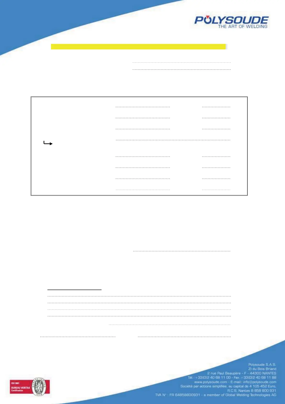 (Please fill out and join this sheet when returning equipment to POLYSOUDE)