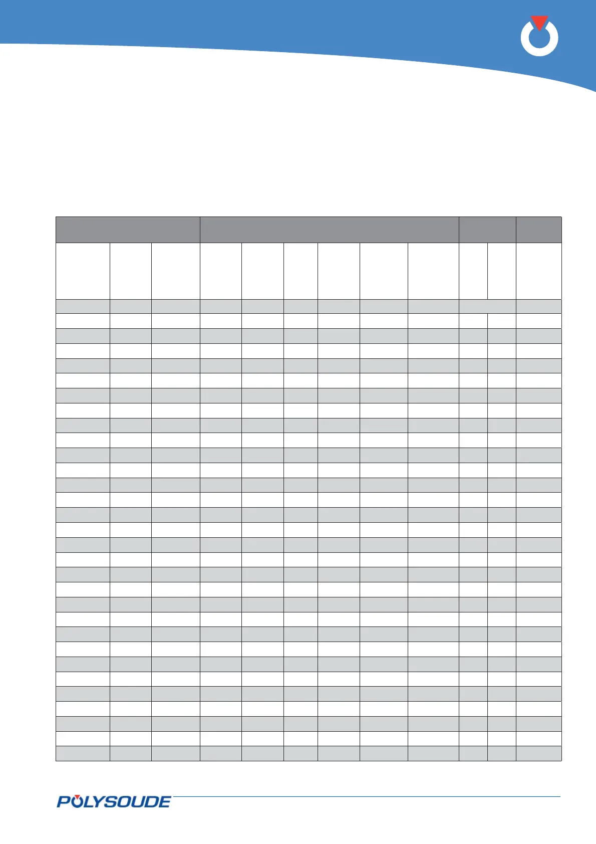 Tubes to be welded Parameters not programmable Range