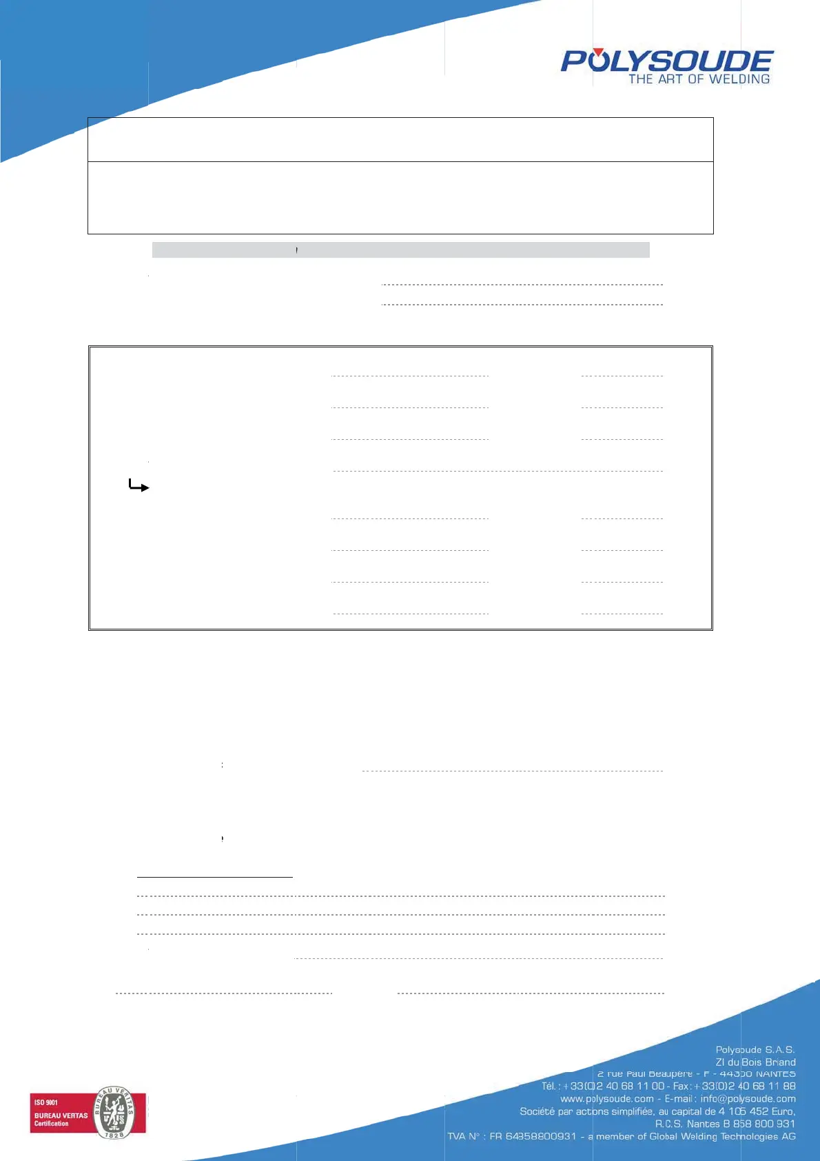 Polysoude PS 406-2 - Equipment Return Form