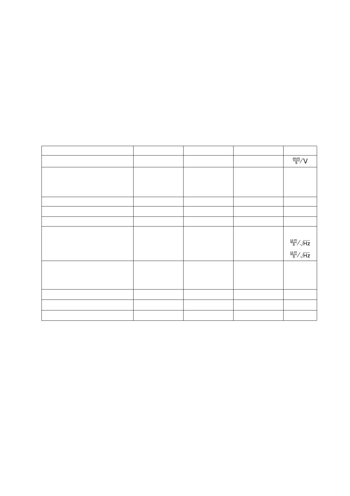 Conditions: sinusoidal vibration, f = 1 kHz, amplitude 70% of full scale range, load resistance ≥ 1MΩ
