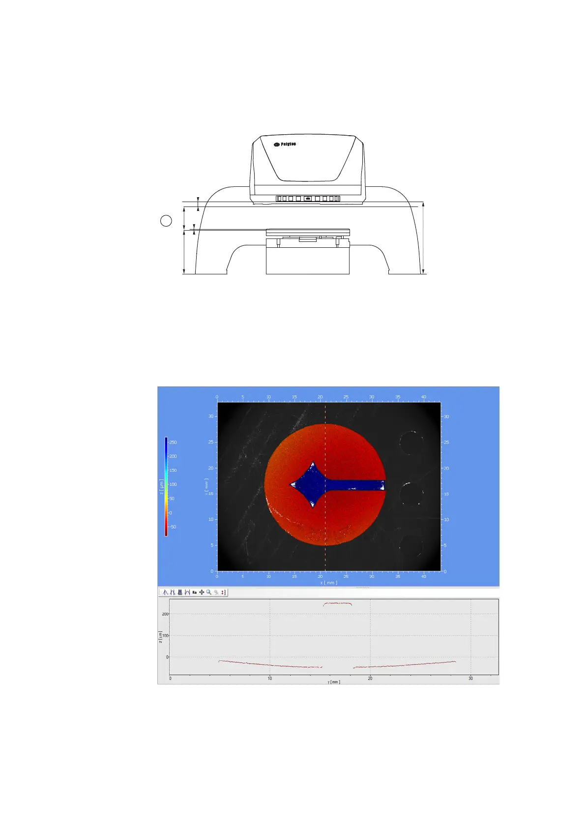 8. Position the Polytec test object within the measurement range [A] on the