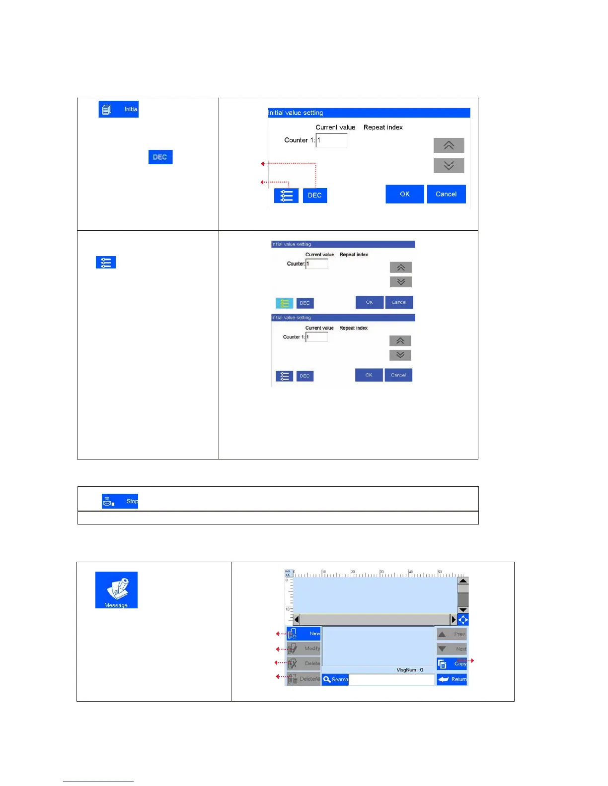 Note: Printer automatically stops printing when power off, cartridge empty, counter alarming etc.