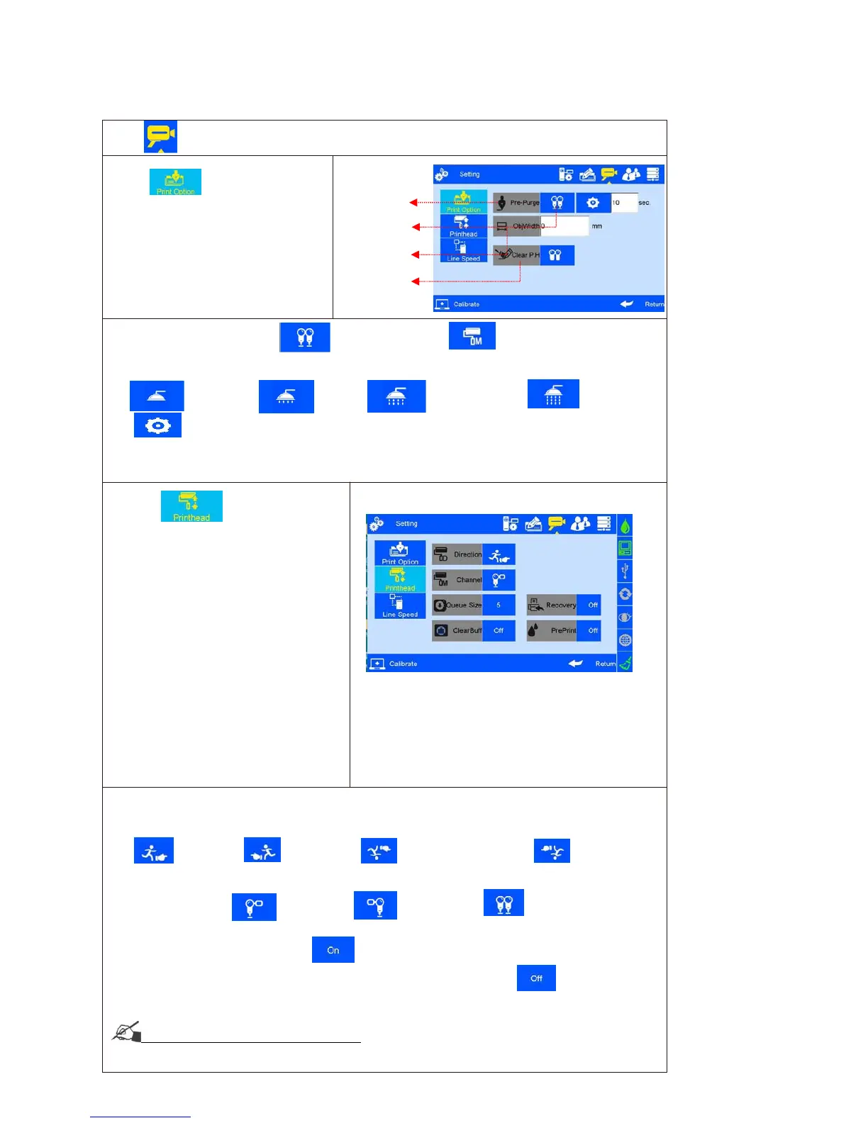 Note: 1) Pre-purge Mode: 2 modes : both right & left nozzles; the working nozzles only.