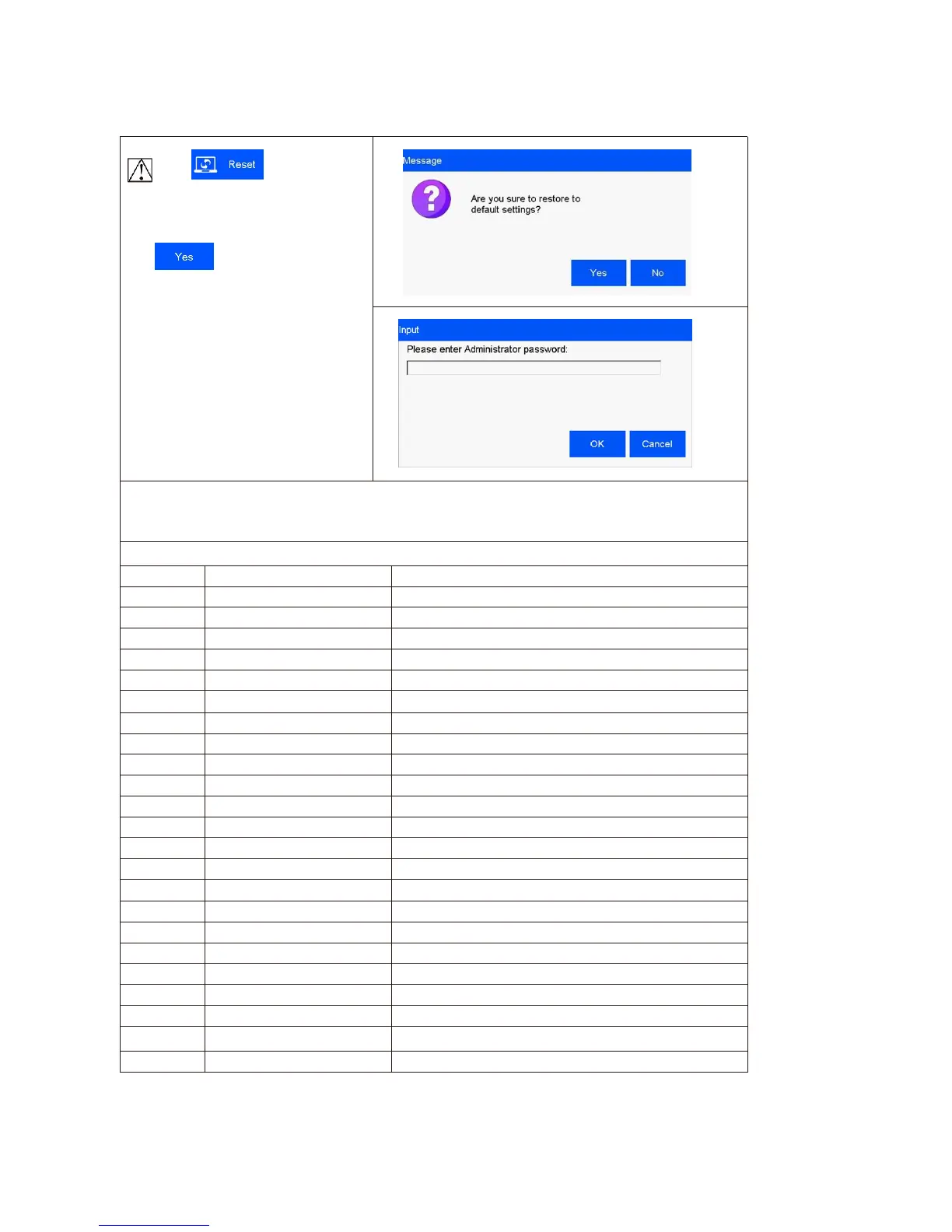 Note: System reset is to restore all defaults.