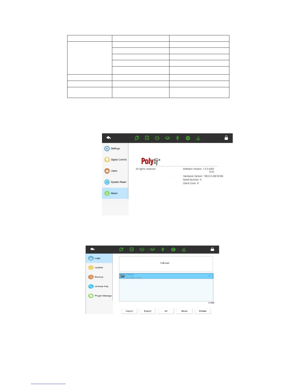 Insert USB with images saved under (Inkjet/Logo/) click import to import the images to the
