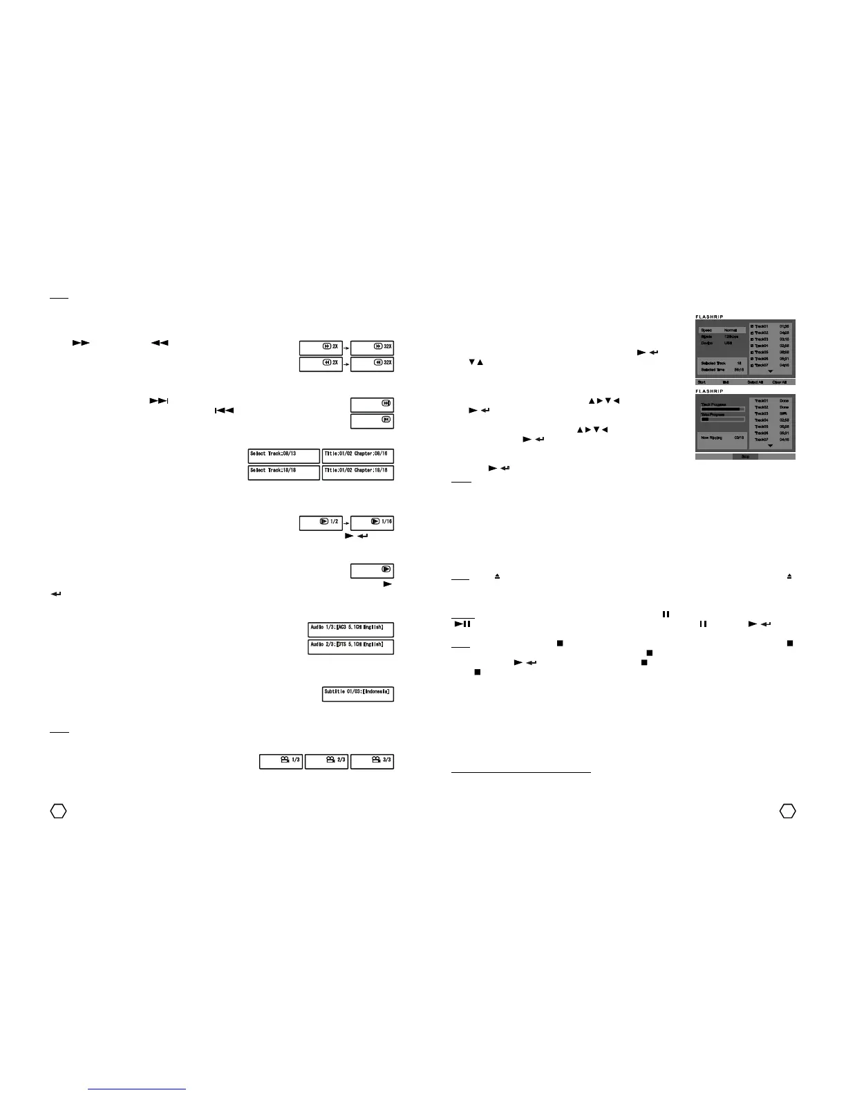Next : When play, press NEXT ( ) button to go to the next chapter (DVD) or track (SVCD/
