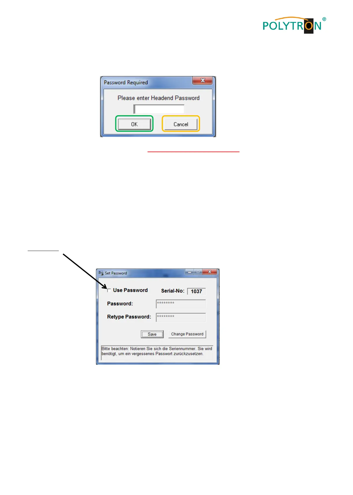 Die generelle Passwortrücksetzung kann nur durch POLYTRON vorgenommen werden, Sie erhalten im Zuge