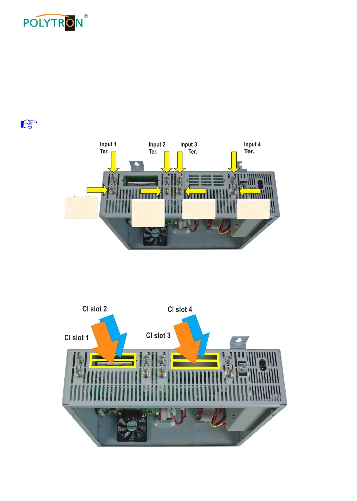 To insert the CI modules, the covers must be removed. Use the picture to see how the CI slots are assigned