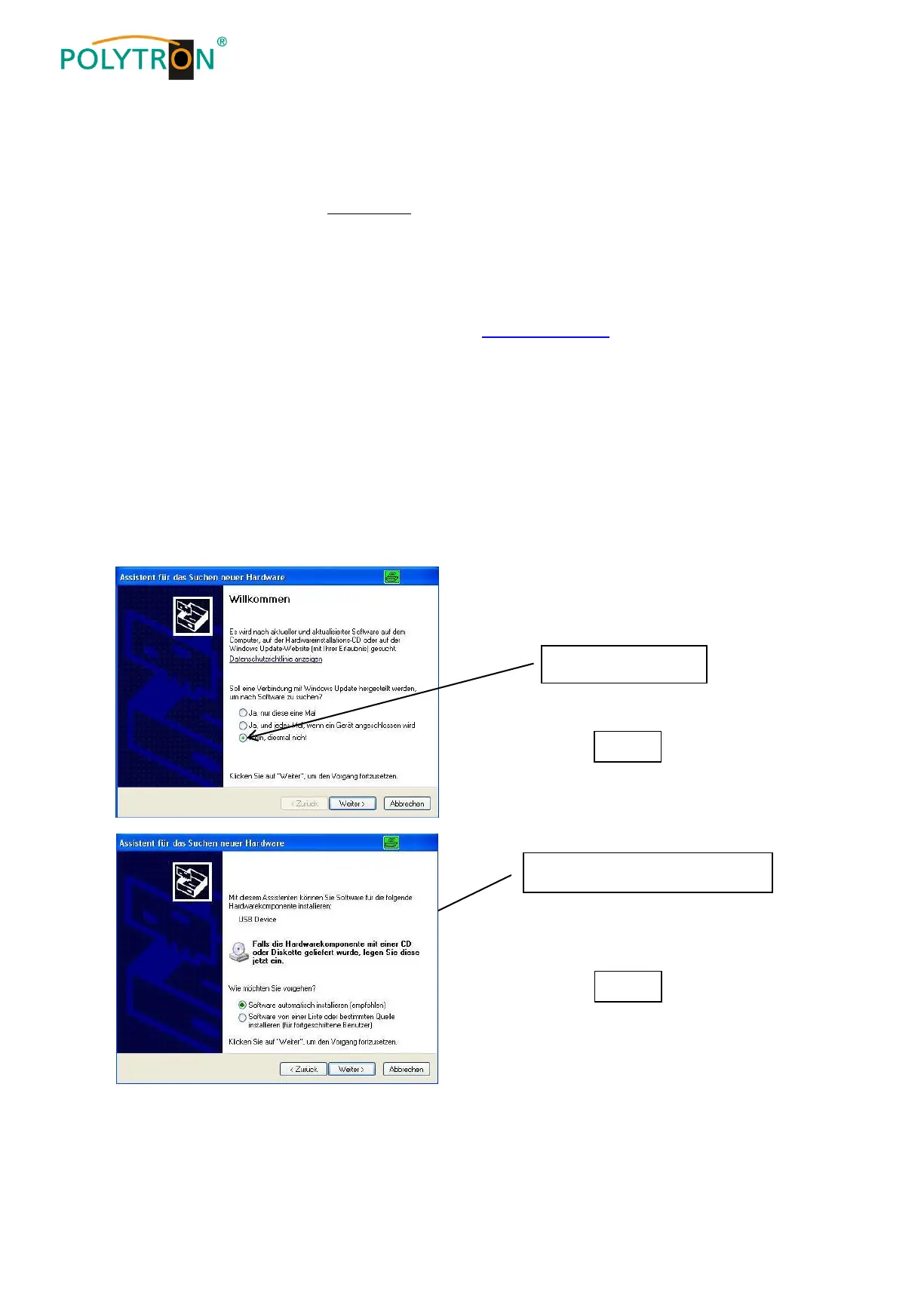 Download the software package from the homepage www.polytron.de (SATC12_Vxxx.zip) and unzip in