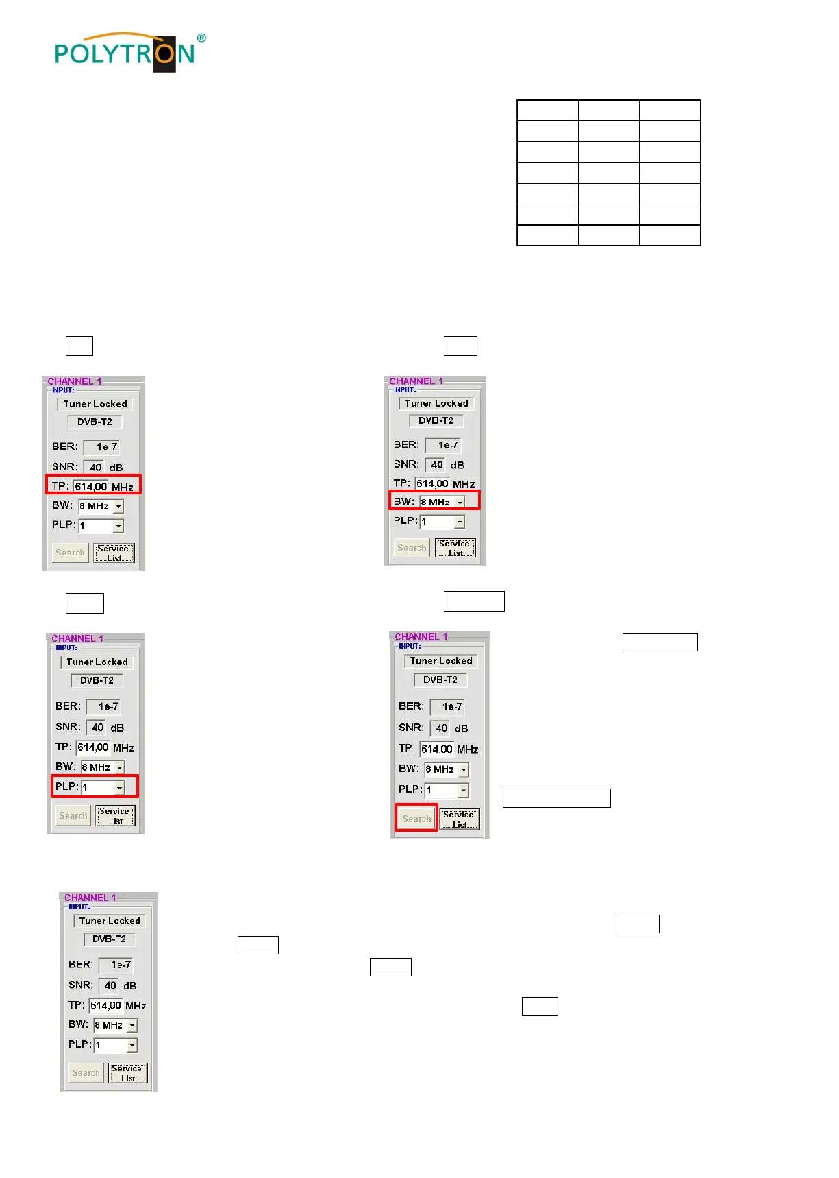 PLP > Select Service (DVB-T2)
